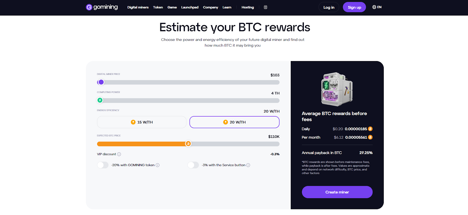 Gomining Digital Miners обещает стабильный доход от облачного майнинга, но отсутствие прозрачности в работе и гарантий вызывает сомнения. Сайт зарегистрирован недавно, что ставит под вопрос его надежность. Рекомендую быть осторожным с этим проектом.