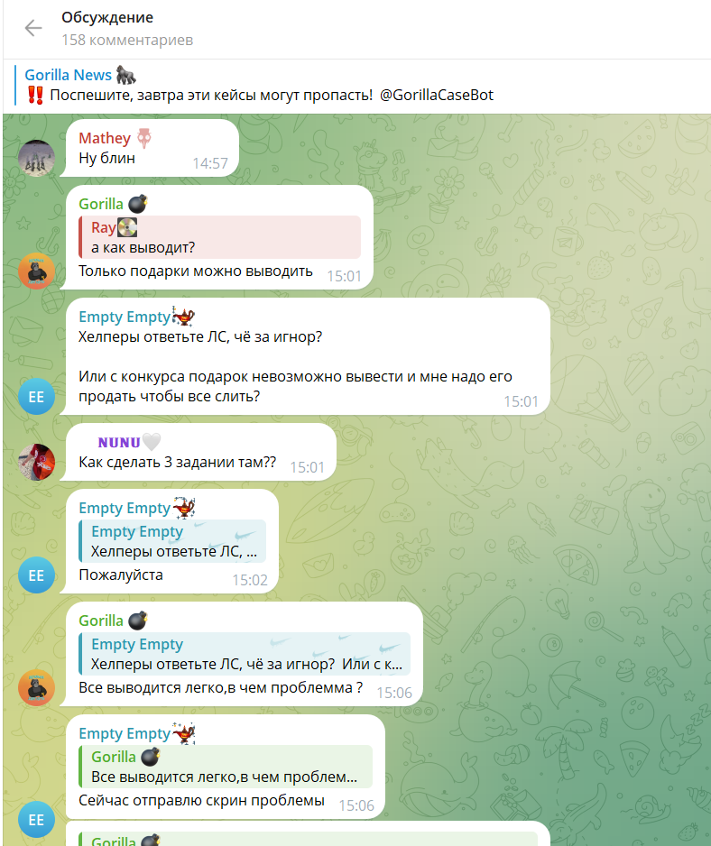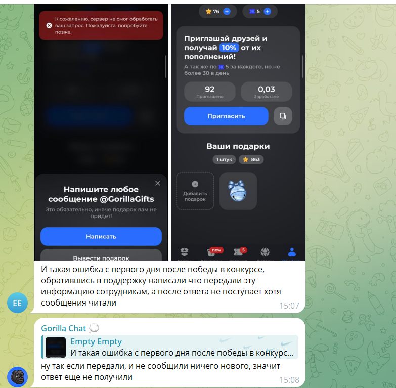 Есть пользователи, которые не понимают, как вывести звезды с gorilla case телеграмм, а кто-то прямо признается, что боится, что подарок придется “слить” в апгрейд.