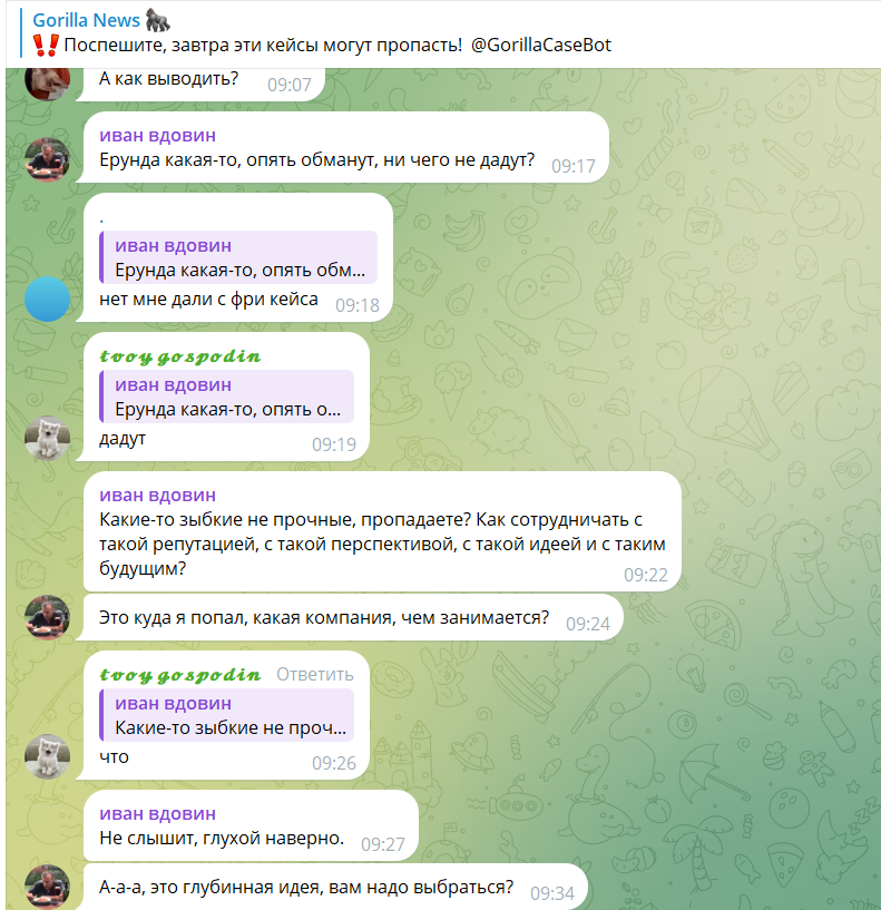 Gorilla Case Bot — очередной скам с анонимными разрабами и фейковыми отзывами. Не ведитесь на развод!