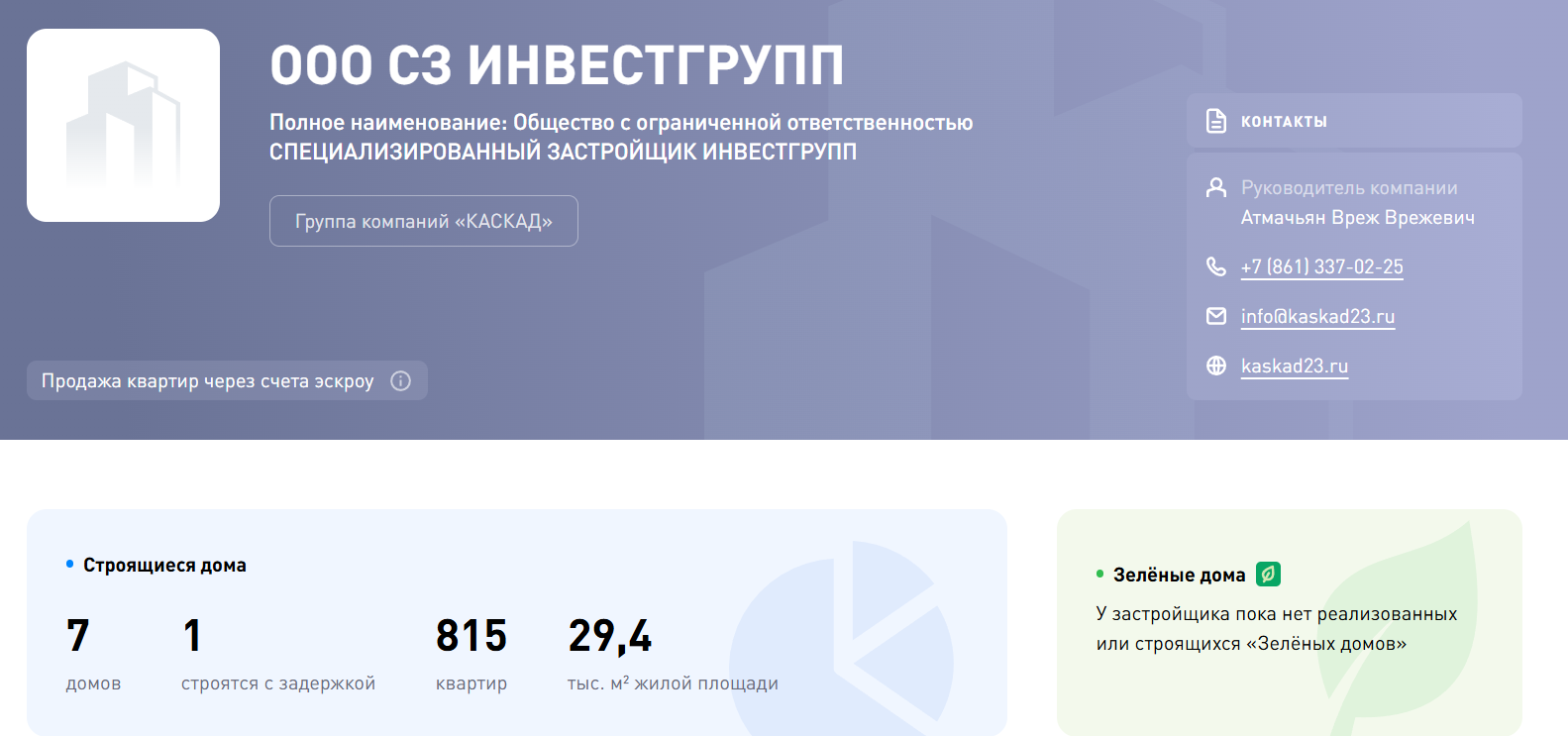 На сайте проекта «Горы Здесь» информации мало, но ее можно посмотреть на ресурсе Наш-Дом рф, где представлены юридические данные и контакты руководителя.
