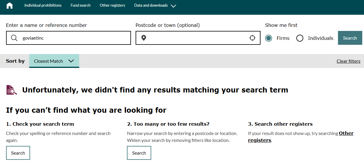 - в сети много негативных отзывов о Goviaetinc com, есть огромный риск стать жертвой подобного развода.