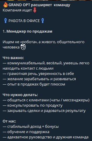 В ленте периодически появляются длинные объявления о поиске новых сотрудников для работы в офисе. Руководители ищут общительных менеджеров по продажам для ежедневного ведения переписок с клиентами и закрытия сделок.