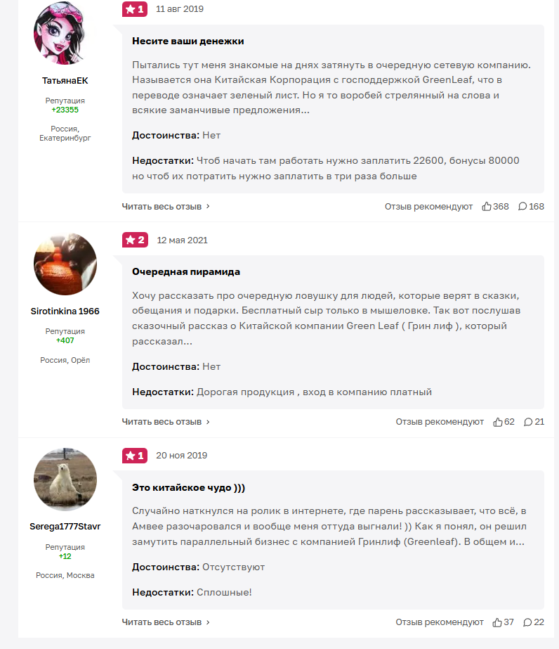 Но можно найти много негативных отзывов про Гринлиф, в которых говорится, что компания – это развод.