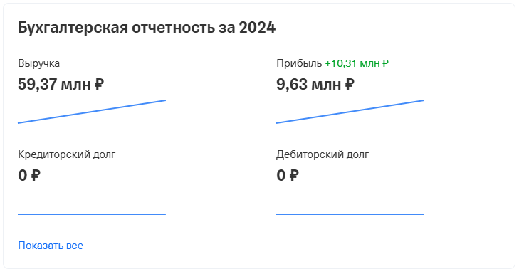 За 2024 год ее выручка составила 59,37 миллиона рублей при прибыли почти в 10 миллионов.