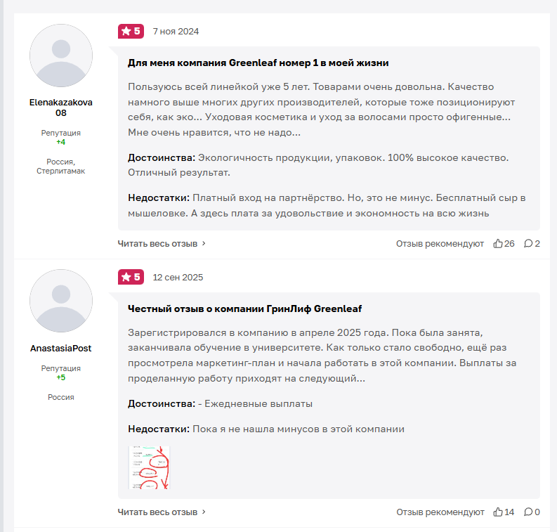 Отзывов о данном проекте, написанных в положительном ключе, достаточно много. Это связано с тем, что в пирамиду Greenleaf Family Born for Beauty вступило большое количество людей. Им нужно поддерживать репутацию проекта, чтобы продавать товары по завышенным ценам, привлекать новых партнеров.