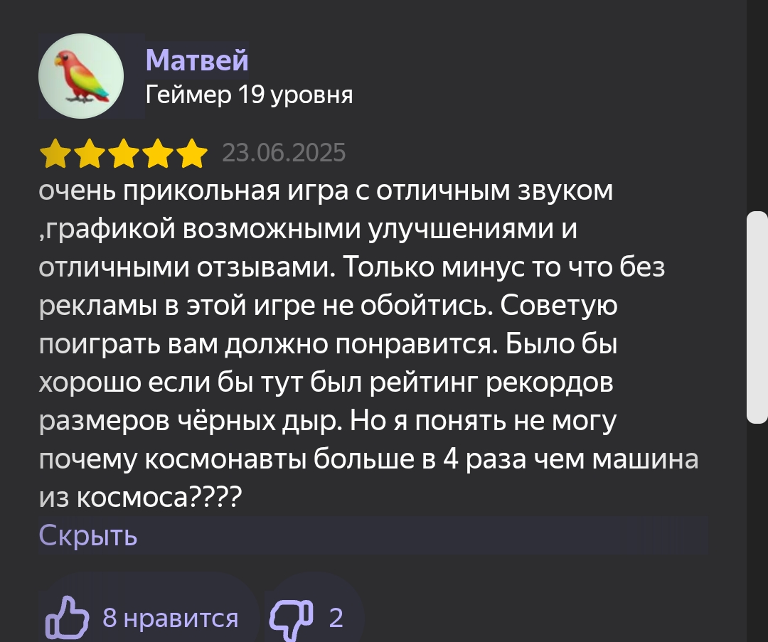Отзывы игроков об игре «Вырасти Черную Дыру: Idle Кликер»