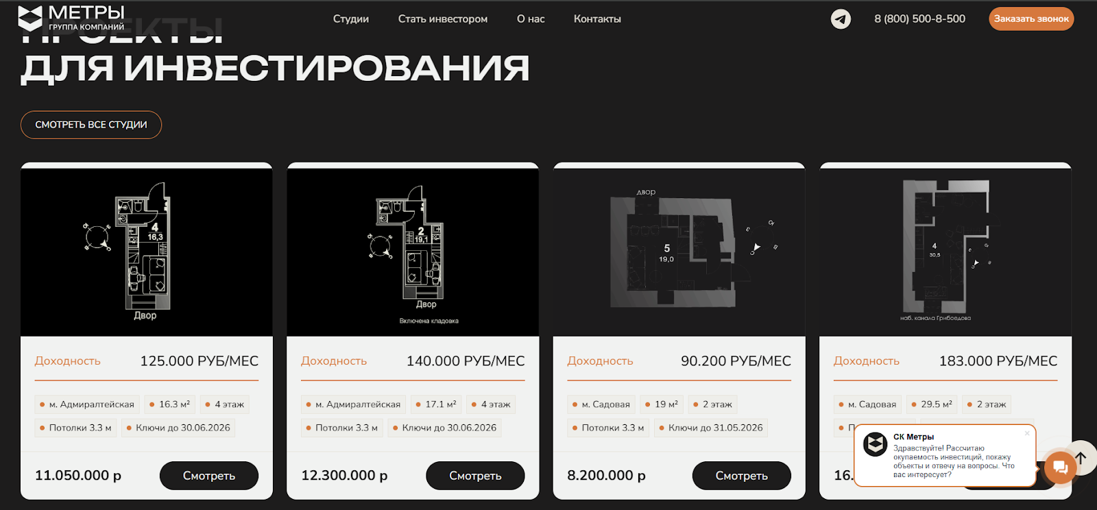 Проект позиционируется как готовый арендный бизнес в историческом центре Санкт-Петербурга. Оставить заявку на сотрудничество можно через Телеграмм Metry Group bot или по электронной почте info@metry group. «Метры» гарантируют: