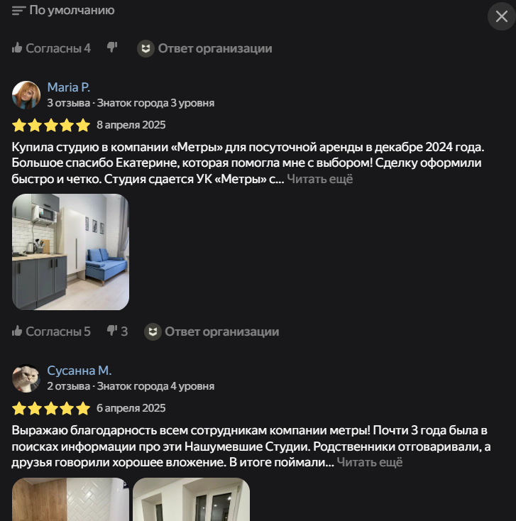 На январь 2026 года на компанию публикуются разные отзывы. Довольные инвесторы хвалят комплектацию студий, быстро и четкое оформление сделки, работу менеджеров, которые якобы действительно рядом на каждом этапе сотрудничества.