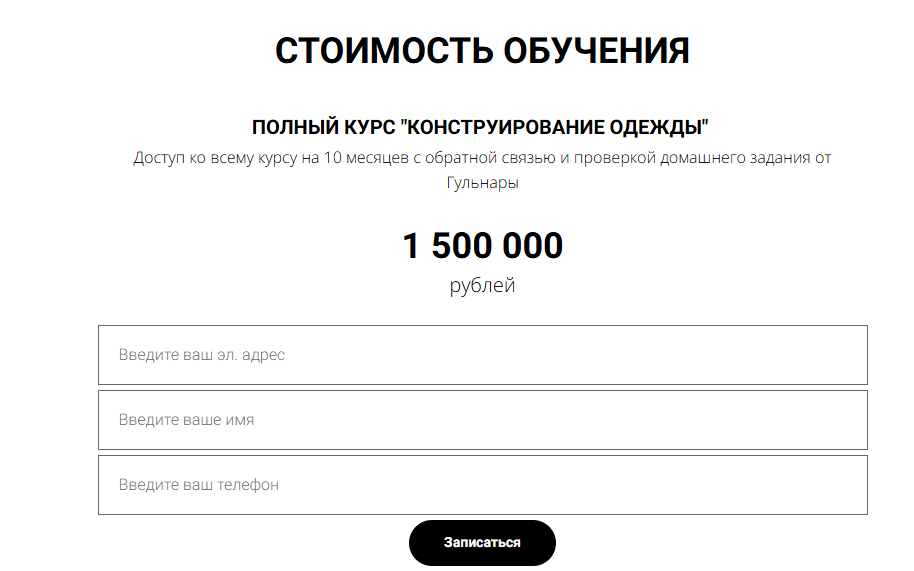 С учетом стоимости в ₽1,500,000 не исключено, что курс «Конструирование» от Гульнары Вахитовой это вероятный лохотрон. При этом значительных гарантий результата клиент не получает, а программа будет доступна в режиме онлайн с возможностью получить обратную связь и продлится 10 месяцев.