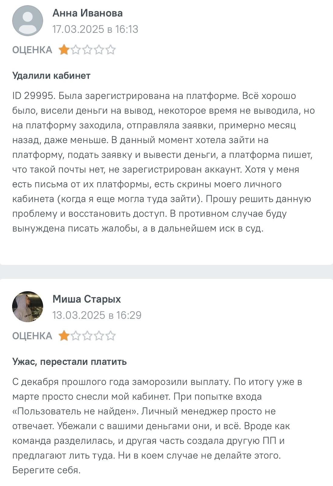 Жалоб на партнерку Гурулидс много: блокировка доступа в личный кабинет, полное удаление аккаунта, сбои в начислениях средств и многое другое, что ведет клиентов только к одному — потере своих денег.