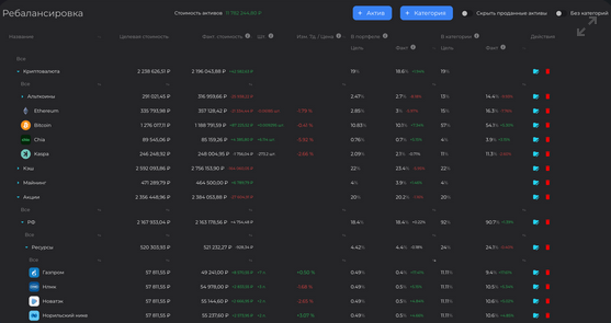 - ребалансировка активов;