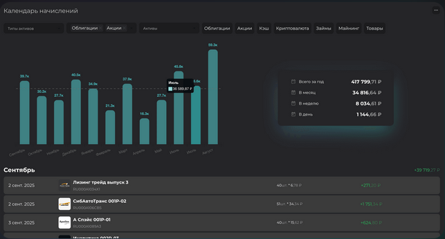 - календарь будущих начислений;