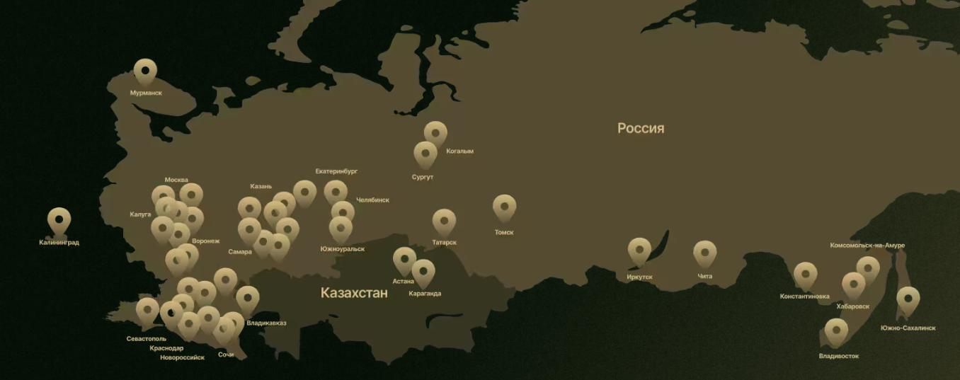 Аферисты показывают торговые точки в РФ, которые открыты их партнерами. Однако ссылки не кликабельны. Мы не можем узнать их точные адреса.