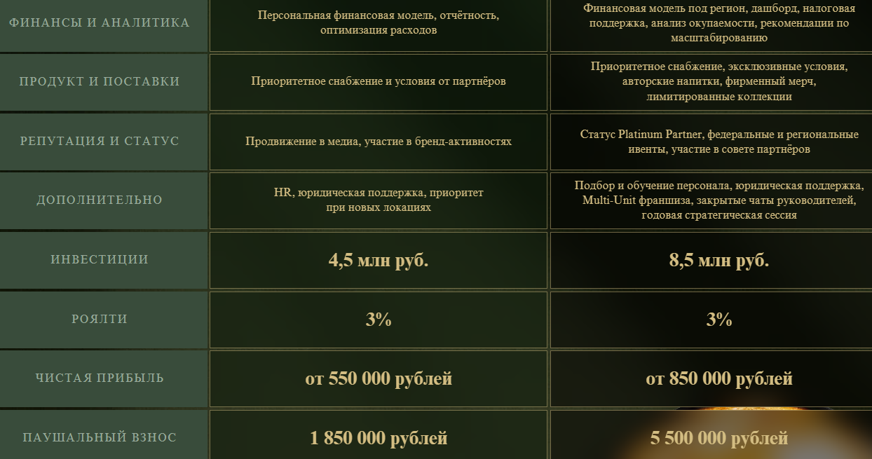 Чтобы начать работать по франшизе, партнер должен заплатить франчайзеру паушальный взнос не менее 1,8 млн руб. Эту сумму бизнесмен не сможет вернуть, даже если его кофейни окажутся нерентабельными, что создает гигантский риск для новичка.