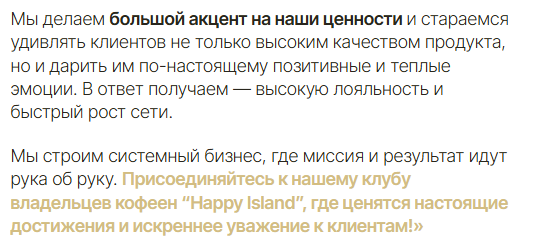 Франшиза Happy Island обещает кофейный рай, а на деле — горький привкус обмана. Платишь миллионы, а получаешь пустые обещания и убытки. Офис в Казани — мираж, а гарантии прибыли — фикция. Не ведитесь на этот кофеинный развод!