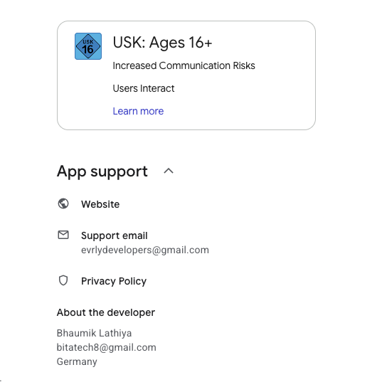 У компании есть официальный сайт, а также 2 электронные почты – поддержки и непосредственно разработчика. Последним выступает некий пользователь Bhaumik Lathiya из Германии.