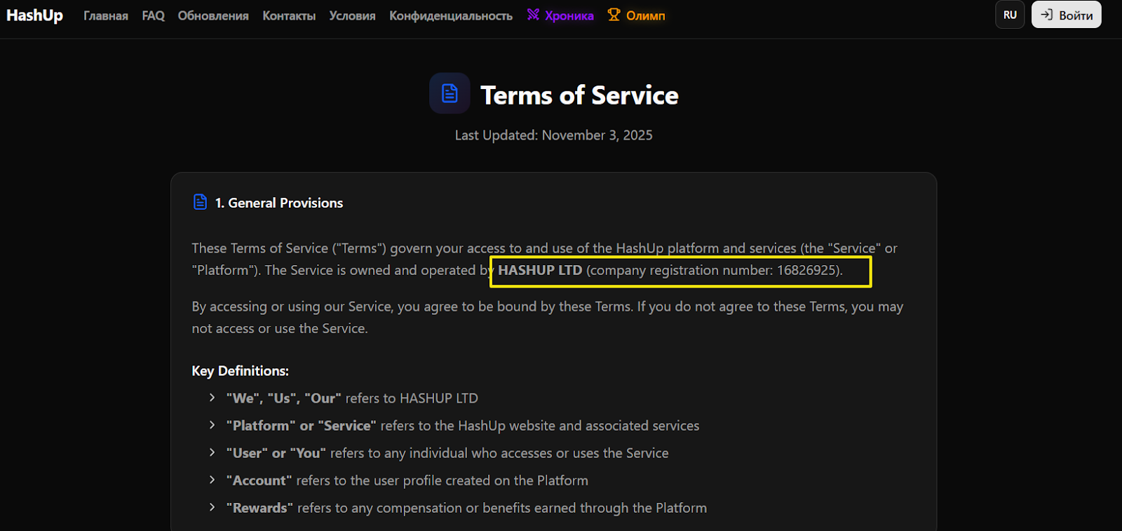 Сервис имеет два домена. Первый, Hashup cc, зарегистрирован 4 июля 2025 года, а второй, Hashup gg, выкуплен 27 октября, то есть буквально пару недель назад. Контора утверждает, что ведет деятельность от имени официально зарегистрированной в Великобритании организации HASHUP LTD. Однако данное имя принадлежит цифровой компании, специализирующейся на продаже доменов, к криптокрану фирма отношения не имеет. Социальных сетей у проекта нет, из контактов доступны e-mail поддержки, онлайн чат и форма обратной связи в личном кабинете. Саппорт работает круглосуточно, но ответы по электронной почте могут приходить с задержкой.