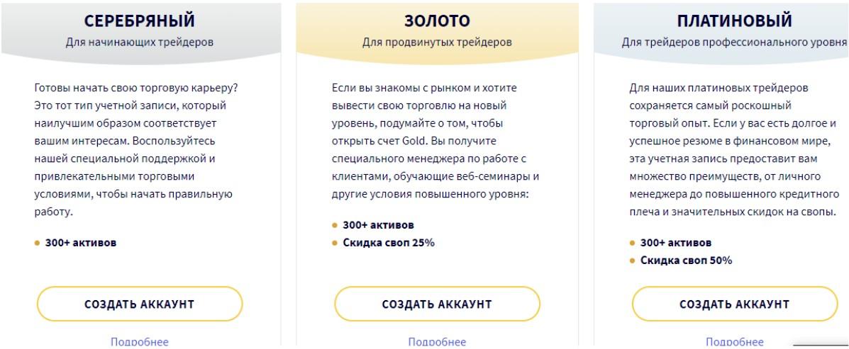 - «Золото»: 300+ активов, скидка своп 25%;