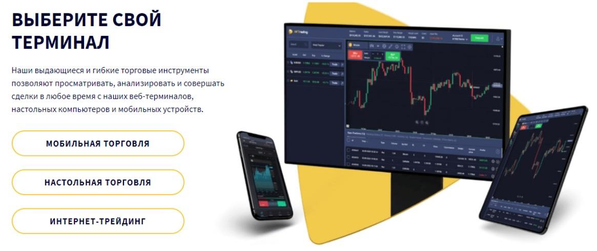 Брокер говорит, что его торговый терминал легко адаптируется к любым устройствам. Торговать можно с компьютера, планшета, смартфона.