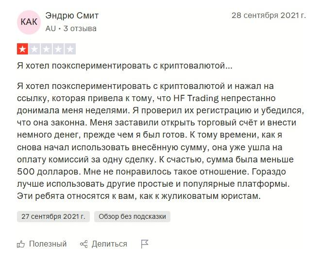 HFTrading — очередной лохотрон: сайт не работает, лицензий нет, отзывы сплошь негативные. Деньги вложишь — не вернёшь.