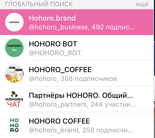 Поиск проекта в телеграм выявил сразу несколько каналов и ботов, связанных с «Хороро». При этом ни одного актуального сообщества мы не нашли, что выглядит странно для франшизы с тысячами действующих точек.