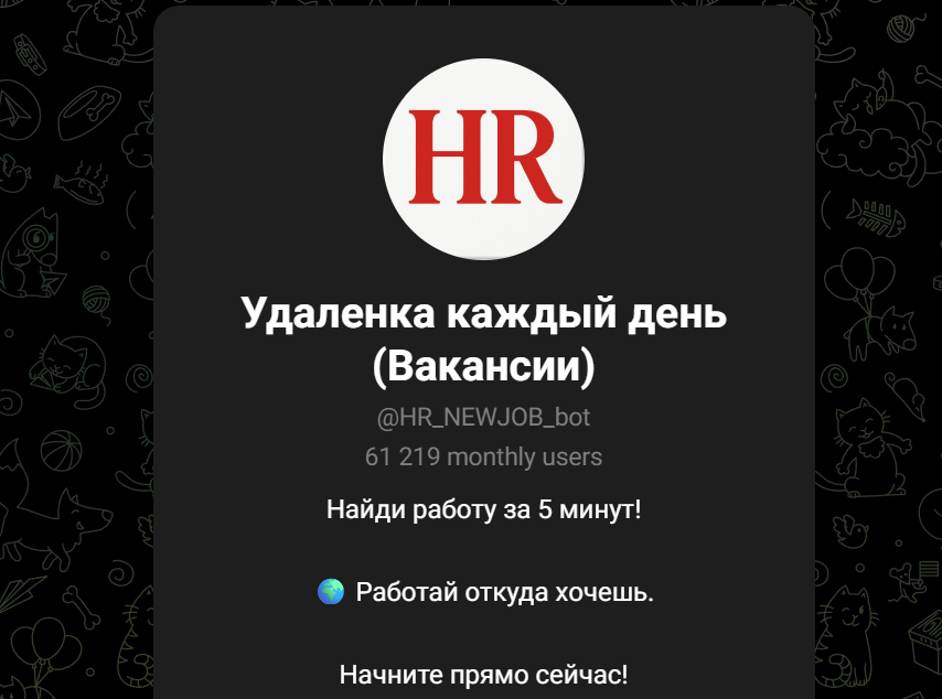 HR NewJob Bot — очередной скам-бот, обещающий золотые горы, а на деле — пустышка. Вакансии исчезают быстрее, чем биток на пике. Не ведитесь на этот развод!