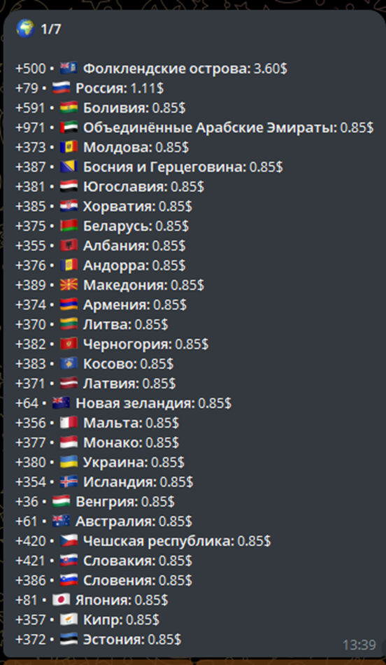 Полный список стран для покупки профилей указан в специальном разделе бота. Аккаунты проходят обязательные проверки на 2FA и спам блок, завершение всех сессий. Покупатель получает полную информацию и результаты проверки. Также чек выполняется при скупке, сервис готов приобретать профили практически любого типа.