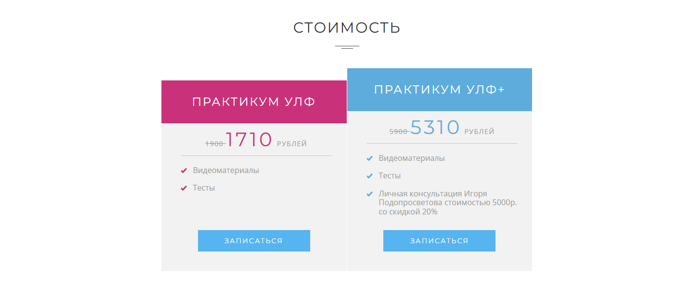 - практикум УЛФ+, 5310 рублей: дополнительная личная консультация с Игорем.