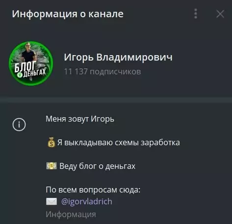 Обзор работы Телеграм канала Игорь Владимирович (igorvladrich): отзывы пользователей, можно ли заработать на рекомендациях автора