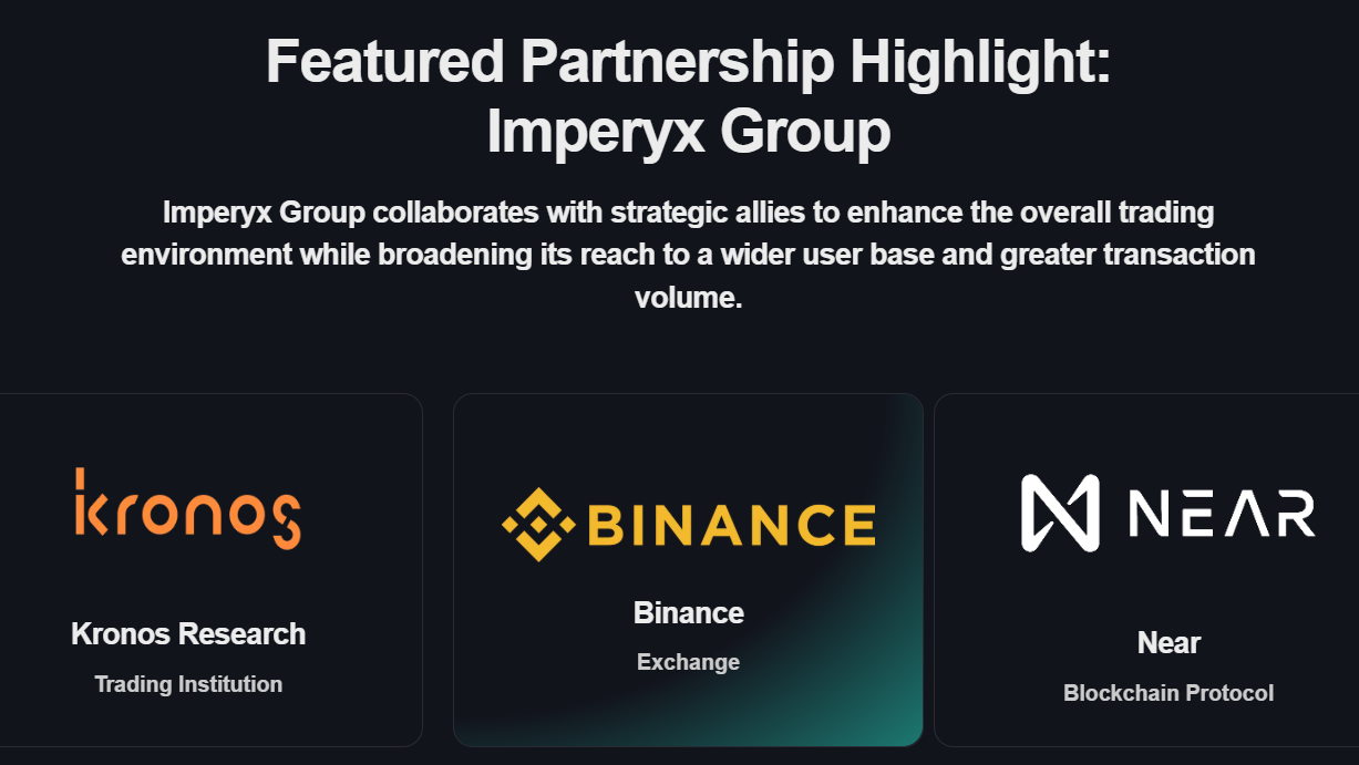 Владельцы говорят, что их главная миссия состоит в том, чтобы убрать разрыв между профессиональными трейдерами и крупными биржами, но в чем это проявляется, непонятно. На сайте в качестве партнеров указаны известные надежные площадки, но их связь с брокером Imperyx Group не подтверждена.