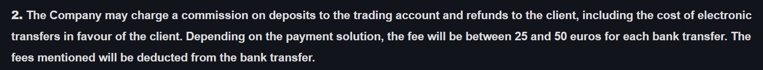 В одном из разделов написано, будто компания не взимает никаких комиссий за вывод средств, но тут же указывает, что сборы могут составлять от €25 до €50, причем их могут взимать даже в том случае, когда клиент захочет пополнить баланс.