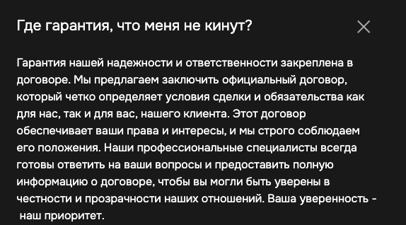 При этом на сайте указано, что от суммы предоплаты, которую клиент решил внести сразу, зависит размер скидок. Но подробных сведений по этому пункту нет.