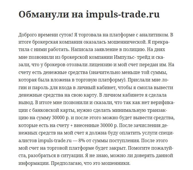 Impuls Trade (impuls trade ru) – обман.
