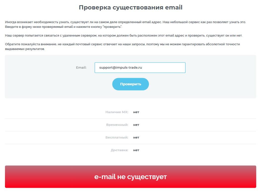 Для связи дан адрес электронной почты support@impuls-trade ru, которого не существует. Больше никаких контактов нет, что странно для якобы успешного и опытного брокера. В соцсетях тоже не продвигает себя.