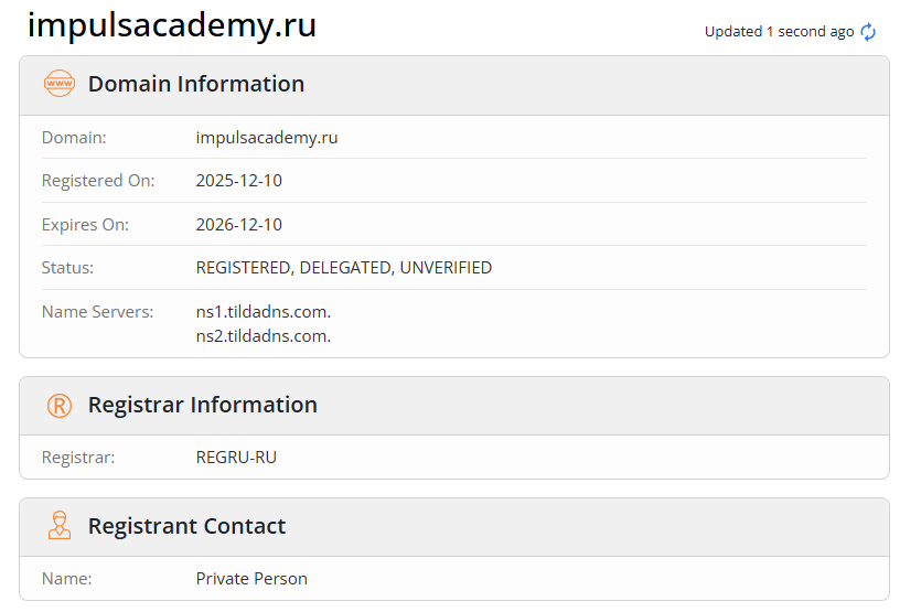 Проверка показала, что он был зарегистрирован только в середине декабря 2025 года.