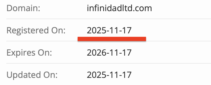 Авторы проекта пытаются козырять богатым опытом и авторитетом на рынке, однако их бравада разбивается в пух и прах при самой поверхностной проверке. Доменное имя сервиса зарегистрировано в ноябре 2025 года: к моменту написания данной статьи сайту нет даже месяца.