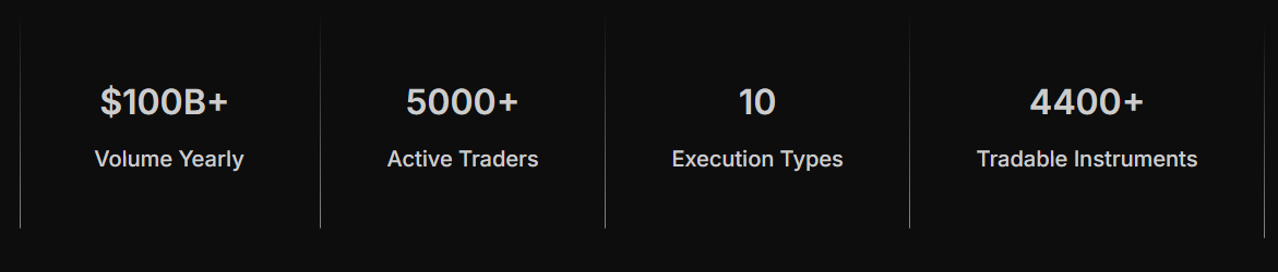 Проект открывает доступ к более чем 4400 инструментам торговли. По заявлениям разработчиков сервисом пользуется 5 000 трейдеров, а годовые объемы торгов через их сервис превышают 100 миллиардов долларов.
