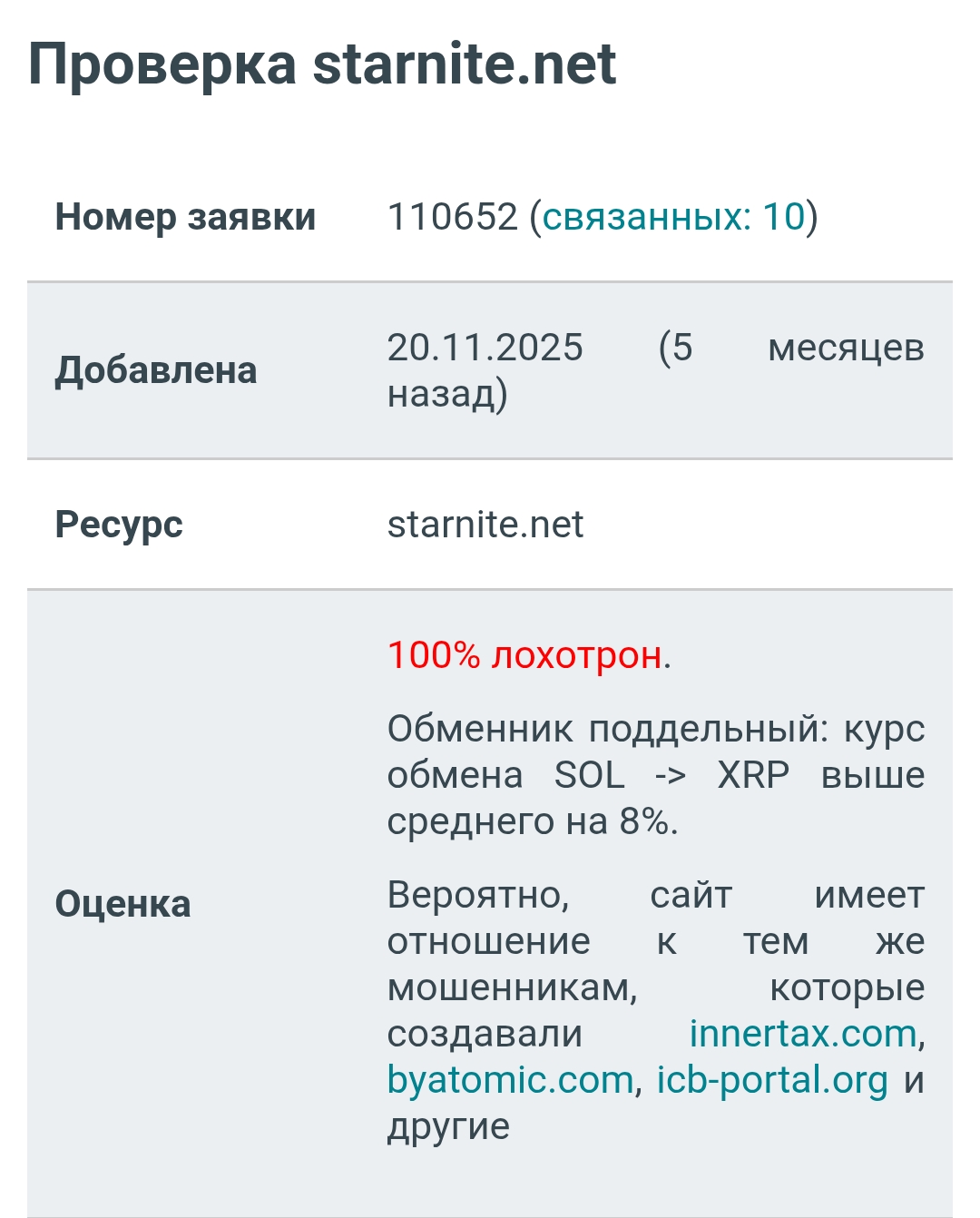Клиенты характеризуют ресурс как мошеннический и связывают его с сетью аналогичных фальшивых обменников.