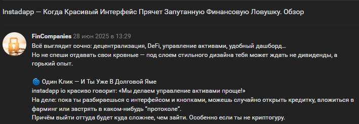 InstaDapp обещает лёгкий доход, но на деле — очередной развод. Потерял деньги, доверившись их «структурированным инвестициям». Не ведитесь на красивые обещания!