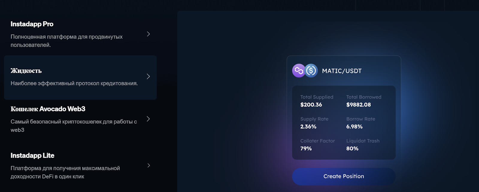 «Инстадапп» позиционируется как платформа для управления DeFi-портфелем и построения финансовых стратегий. Instadapp позволяет: