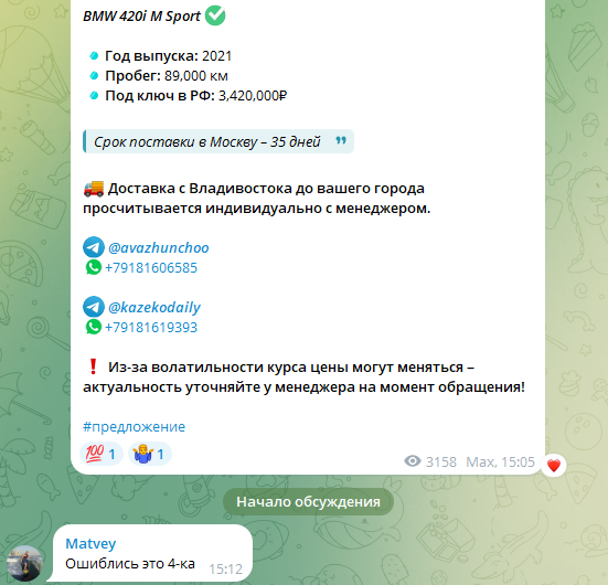 При этом в мае 2025 года контакты Макса и Авазбека были указаны в другой группе, также связанной с услугой пригона автомобилей.