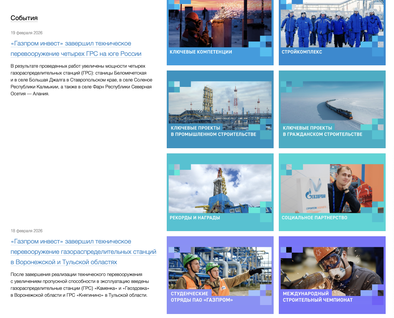 Сайт организации располагается по адресу invest gazprom ru. На его главной странице представлены последние новости проекта «Газпром Инвест».