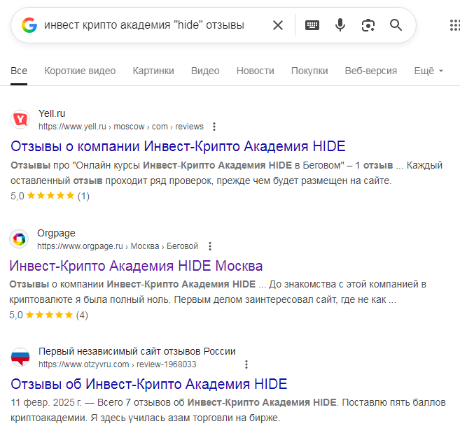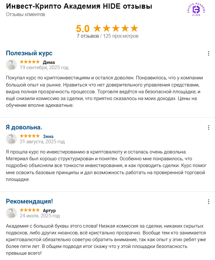 Реальные отзывы о «Инвест Крипто Академия Hide»