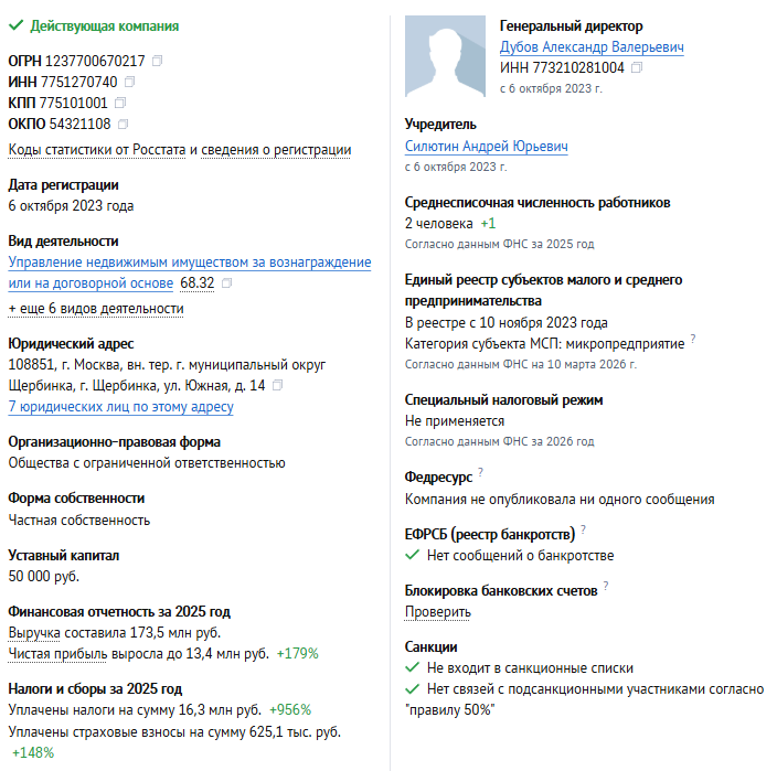 Вот так выглядят блоки. Их можно посмотреть на карте. Уже на этом этапе все выглядит достаточно странно. Проект запустили в 2023 году. Тогда же появилось юридическое лицо. Объекты планировали к концу 2026 года.