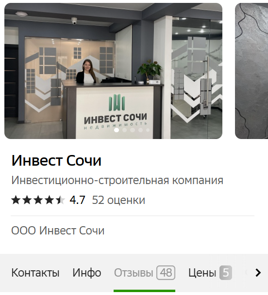 Сотрудники конторы Инвест Сочи недвижимость якобы подбирают объекты в новостройках для инвесторов, а также продают квадратные метры в новостройках и вторичном жилье, занимаются оформлением ипотеки, консультируют по рассрочке и нюансам покупки жилья. Также в спектр услуг входит подбор загородной и элитной недвижимости. Согласно представленным данным, адрес организации в городе Сочи – улица Молокова дом 44. По другим данным офис Инвест Сочи находится на ул Виноградная 204б 1, отзывы юзеров подтверждают переезды компании. Видимо, в гости заходит слишком много недовольных клиентов.