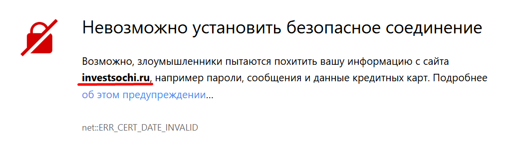 Мы решили заглянуть на сайт организации Investsochi ru, однако данный ресурс детектится как неблагонадежный и прилежащий злоумышленникам.