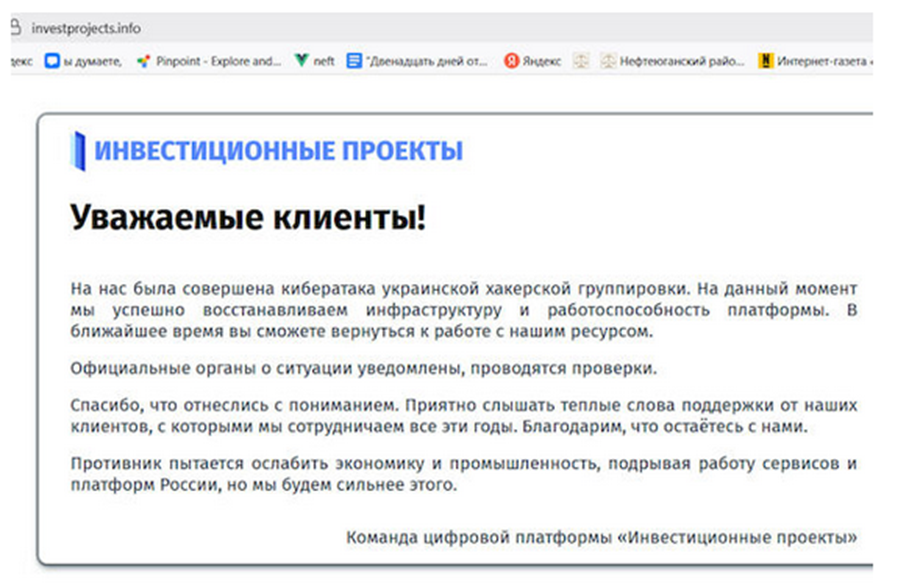19 августа 2025 на сайт платформы была совершена атака. Площадка на время прекратила работать, информация для пользователей была недоступной. Но сервис investprojects info не был взломан, хотя атака затронула работу более 80 тысяч проектов. На главной странице сайта было опубликовано соответствующее объявление о том, что технические работы ведутся. Доступ был восстановлен, кражи или утраты данных с платформы не зафиксировано.