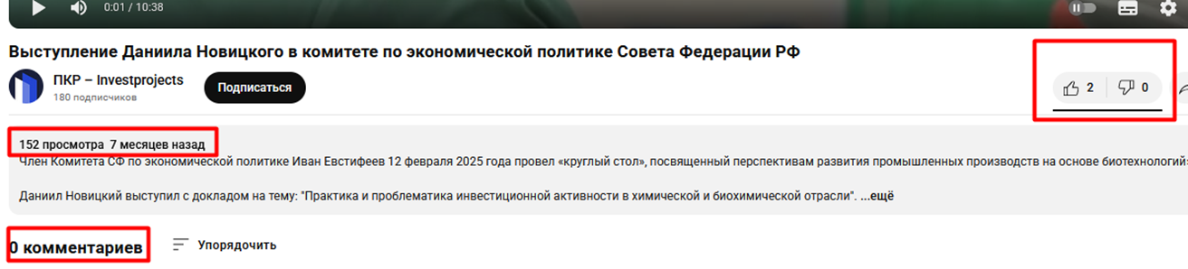 На ТГ канале проекта комментирование закрыто, реакции пользователей ограничены. На канале Ютуб обсуждений под видео нет, число просмотров минимальное. Чат для пользователей платформы носит закрытый формат, что не позволяет ознакомиться с мнением участников проекта.