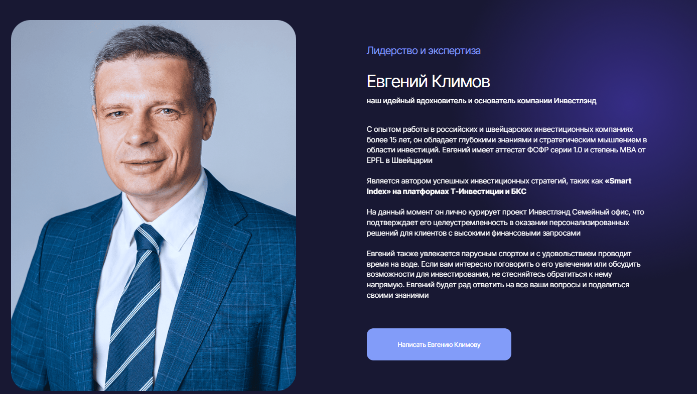 За сервисом Investland стоит Игорь Климов, который является основателем компании: