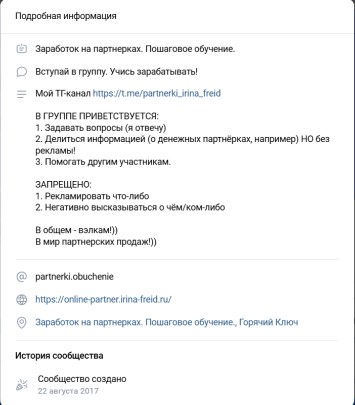 Здесь также нет информации об Ирине Фрейд, контент аналогичен тому, что выходит в телеграмм-комьюнити.